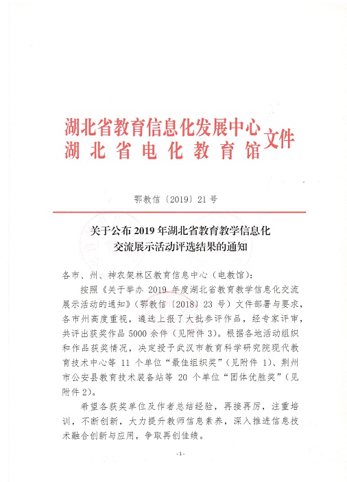 关于公布2019年湖北省教育教学信息化交流展示活动评选结果的通知