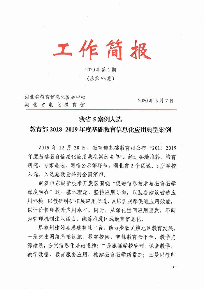 2020年第1期湖北教育信息化《工作简报》(总第53期)